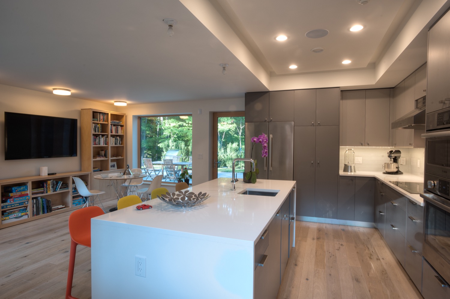 Our vocabulary is inspired by the Bauhaus movement and Mid-Century modern architecture. Material textures and colors impart a depth and feeling of warmth to our homes. Much attention has been paid to details such as spatial relationships between living areas and to the natural environment, as well as to the integration of natural light and the intelligent use of expanded space and volume.